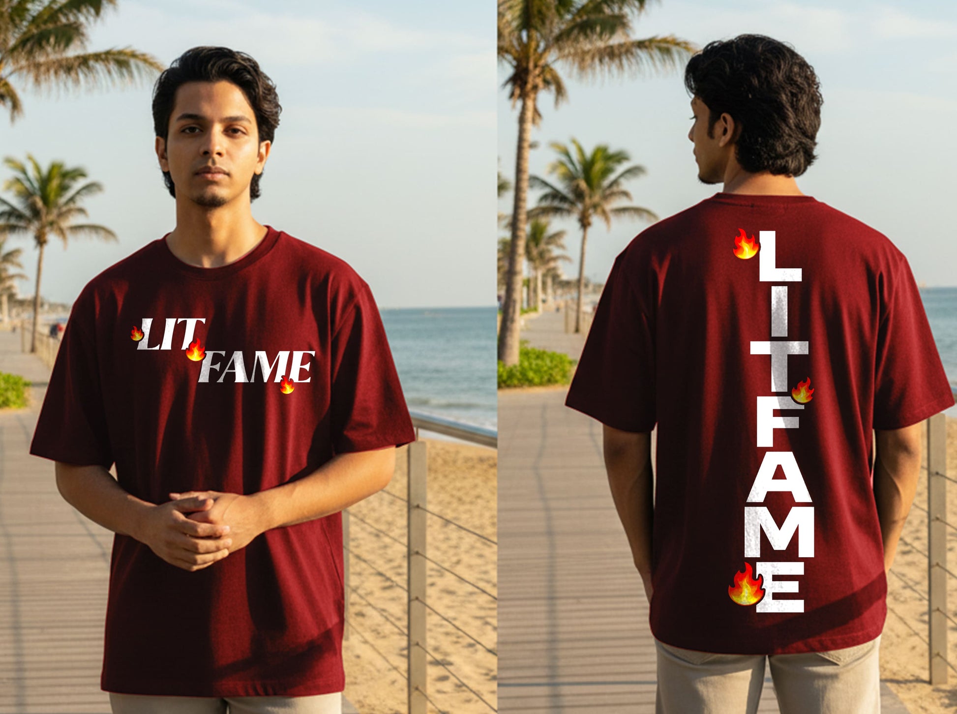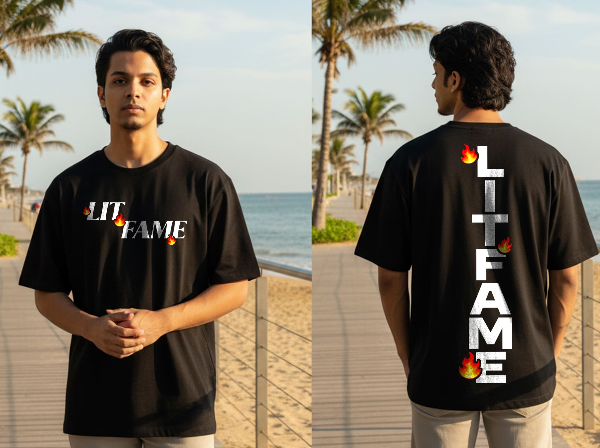 The bold “LITFAME” typography across the chest symbolizes freedom, rebellion, and individuality — making it more than just a T-shirt; it’s a mindset. Perfect for pairing with cargos, denims, or joggers, it brings that edgy, confident vibe to your everyday look.
